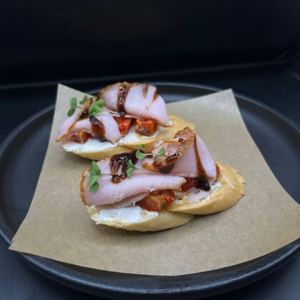 багет, лосось с/с, творожный сыр, свежий огурец, соус кисло-сладкий