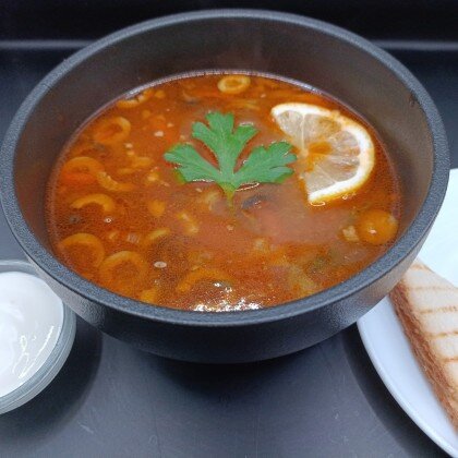 Говядина, болгарский перец, сельдерей, лук репчатый, томаты в собственном соку, стручковая фасоль, картофель, перец чили, вино красное сухое, соус демиглас, бульон, фокача