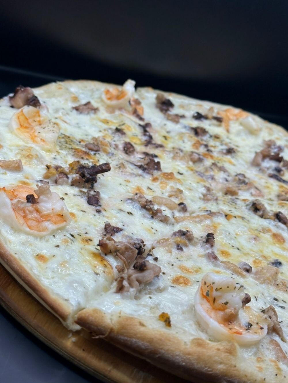 Дрожжевое тесто, моцарелла, креветки, морской коктейль, соус,пармезан, базилик
